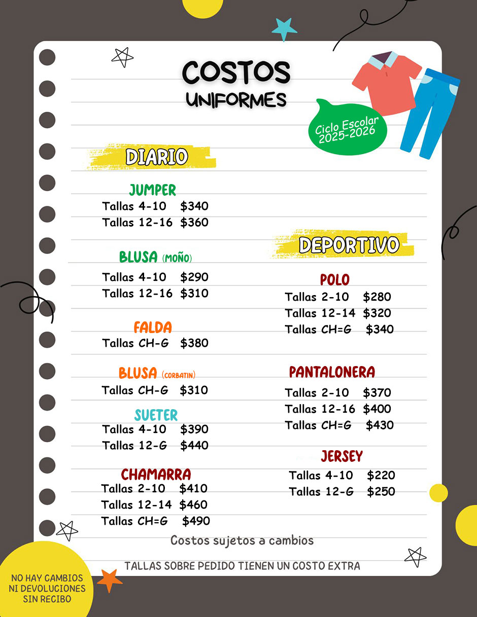 Precios vigentes para el ciclo escolar 2025-2026